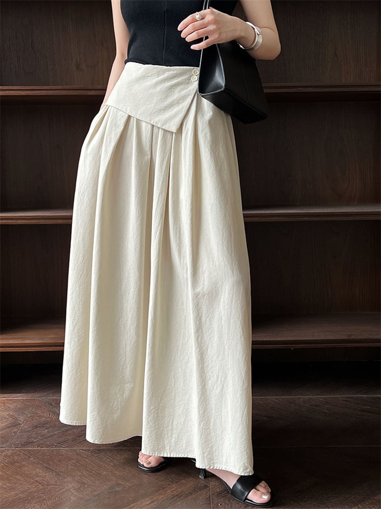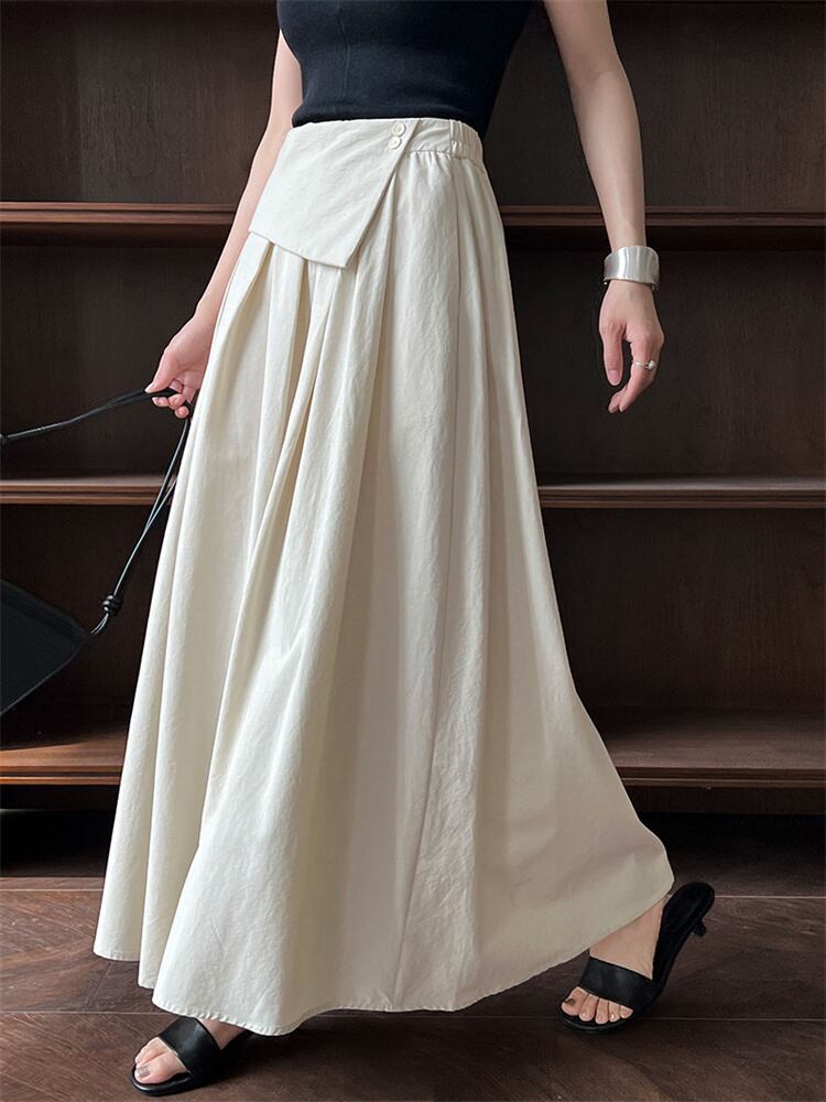 ◎【送料無料】大人カジュアルを楽しむ ロングスカート 2025年夏 女性用 ゴムベルト アシンメトリーデザイン Aライン