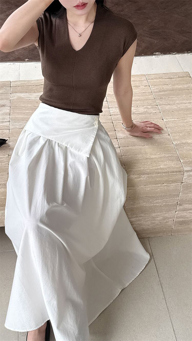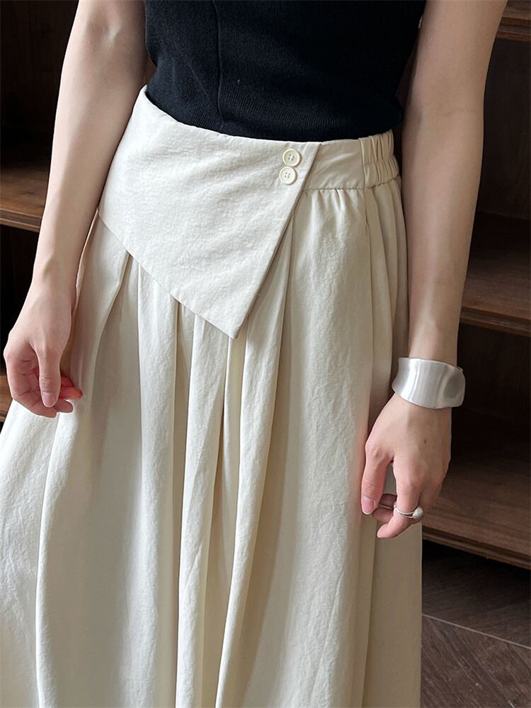 ロングスカート 2025年夏 女性用 ゴムベルト アシンメトリーデザイン Aライン