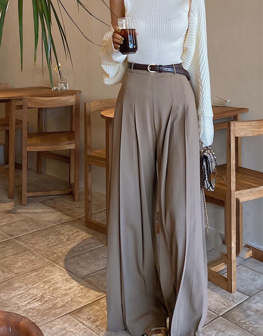 ◎【送料無料】ロングパンツ マキシ丈 パンツ レディース プリーツ ハイウエスト ワイドパンツ 気質 シンプル