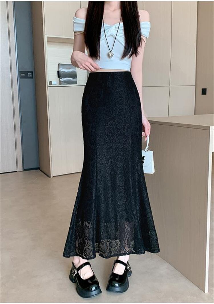 ◎【送料無料】告白を受けます 2025春夏 新作 レースカットハイウエスト エレガントフィッシュテールロングスカート