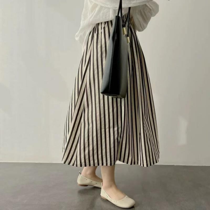 ◎【送料無料】2025新作 ストライプ柄 スカート ロングスカート レディース Aライン ハイウエスト 大人可愛い おしゃれ