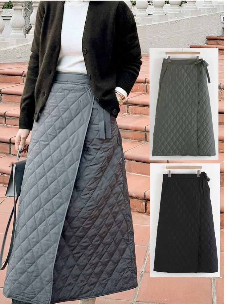 ◎【送料無料】秋冬新作 スカート 巻きスカート レディース ボトムス ロング丈スカート 寒さ対策 中綿 体型カバー