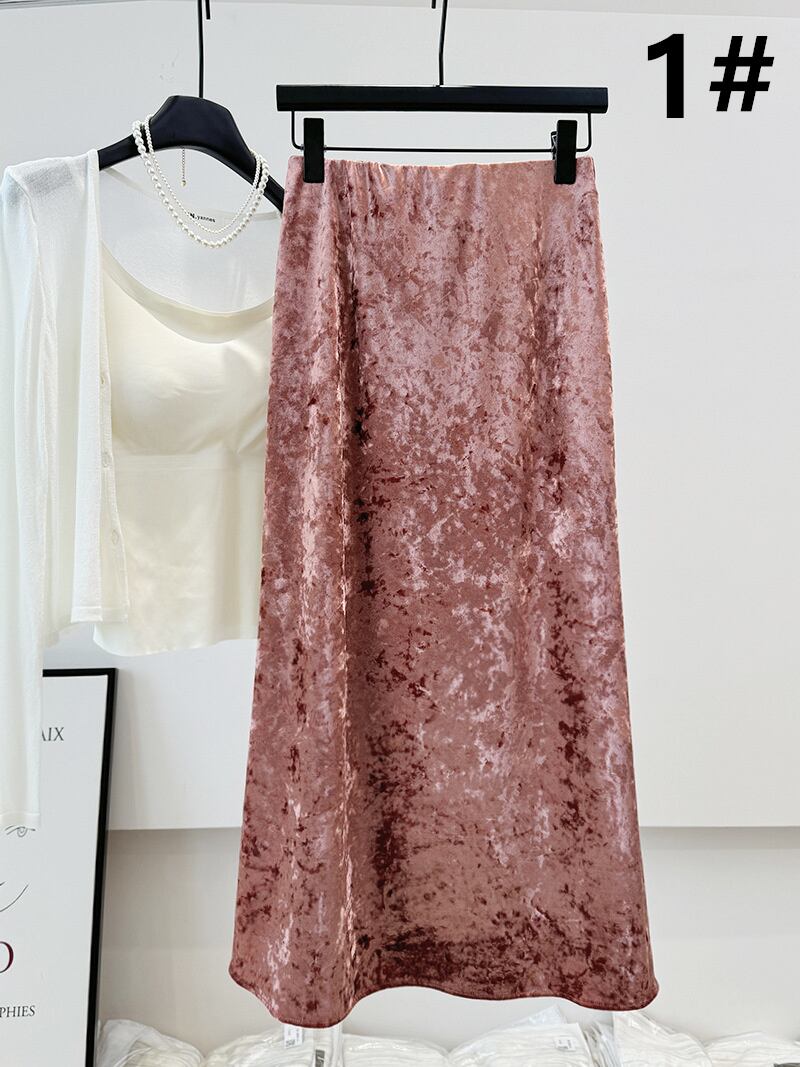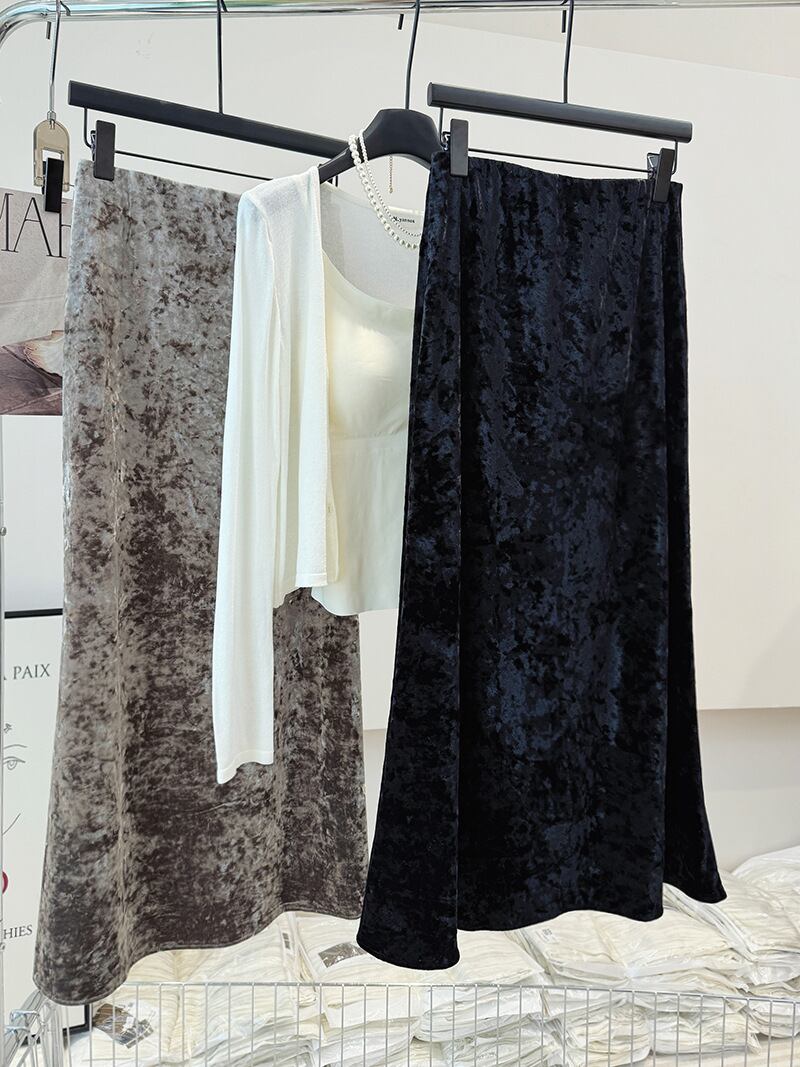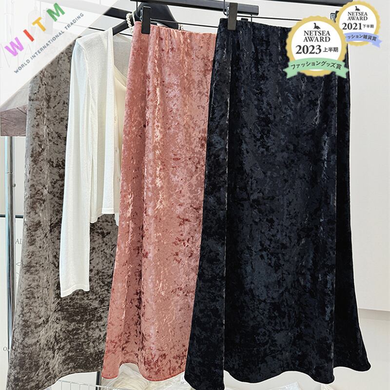 ◎【送料無料】秋冬新作 ロング丈スカート ベロア スカート 体型カバー Aライン レディース おしゃれ