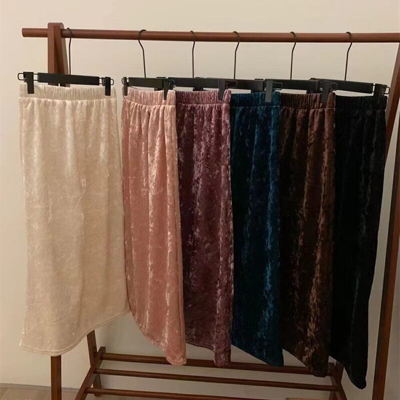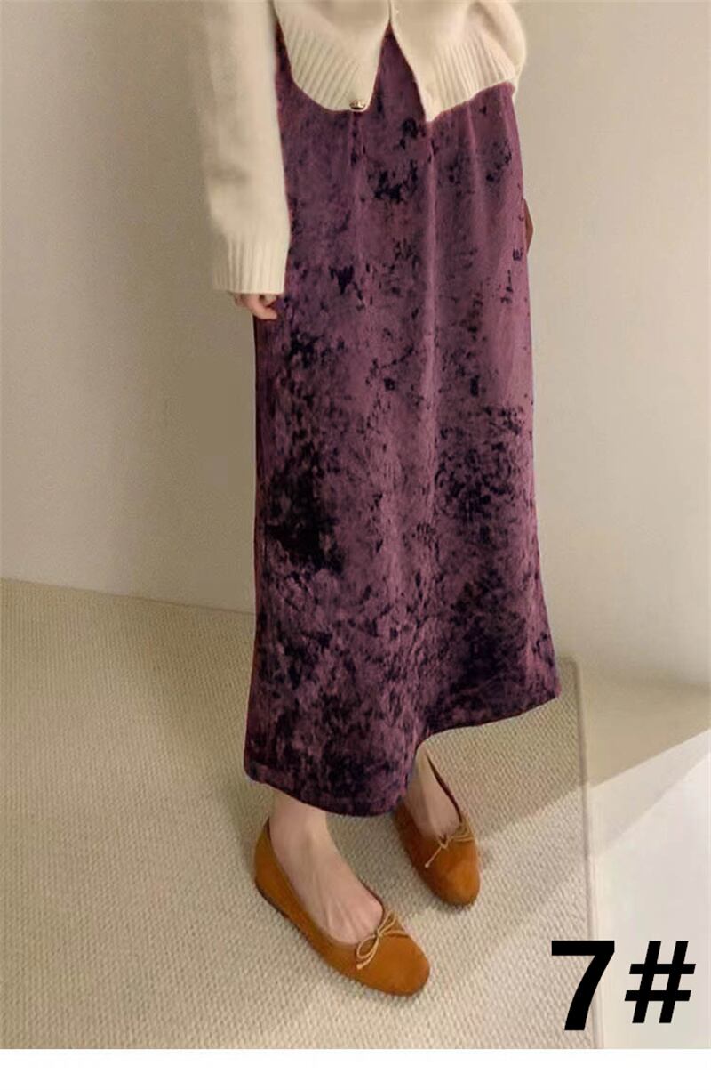 ◎【送料無料】秋冬新作 ロング丈スカート ベロア スカート 体型カバー Aライン レディース おしゃれ 全7色