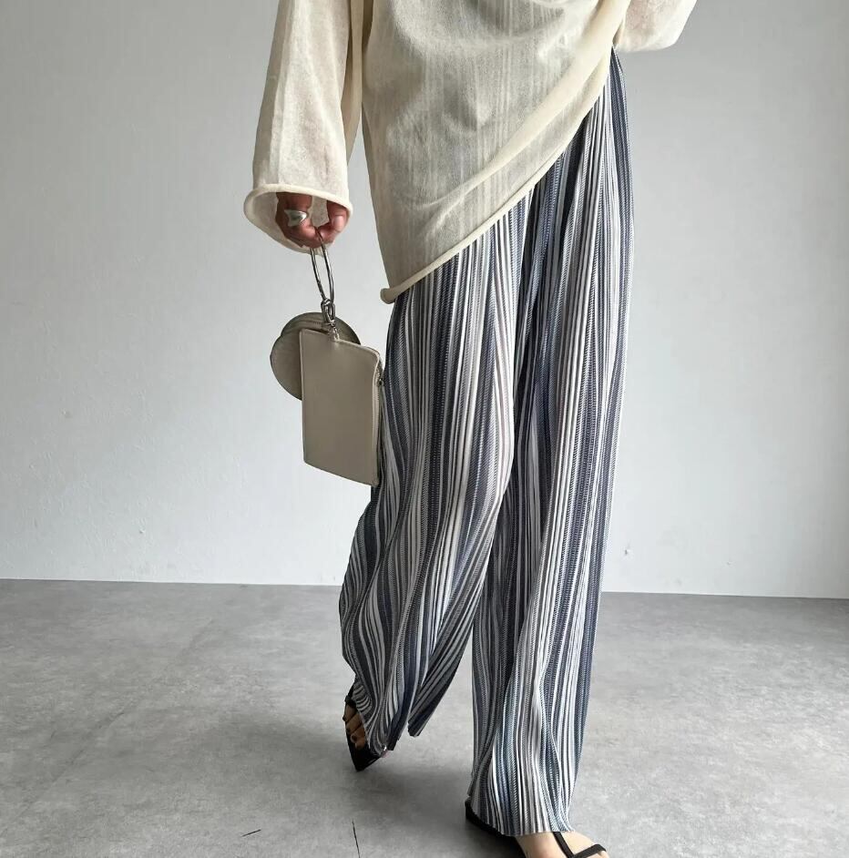 ゆったりワイドシルエットでこなれ見え◎くしゅくしゅとしたデザインで軽さもあり夏もサラッと涼しく、べたつき感のない履き心地◎