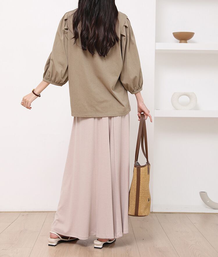 春夏にピッタリな素材のスカートは今季注目のアイテム。