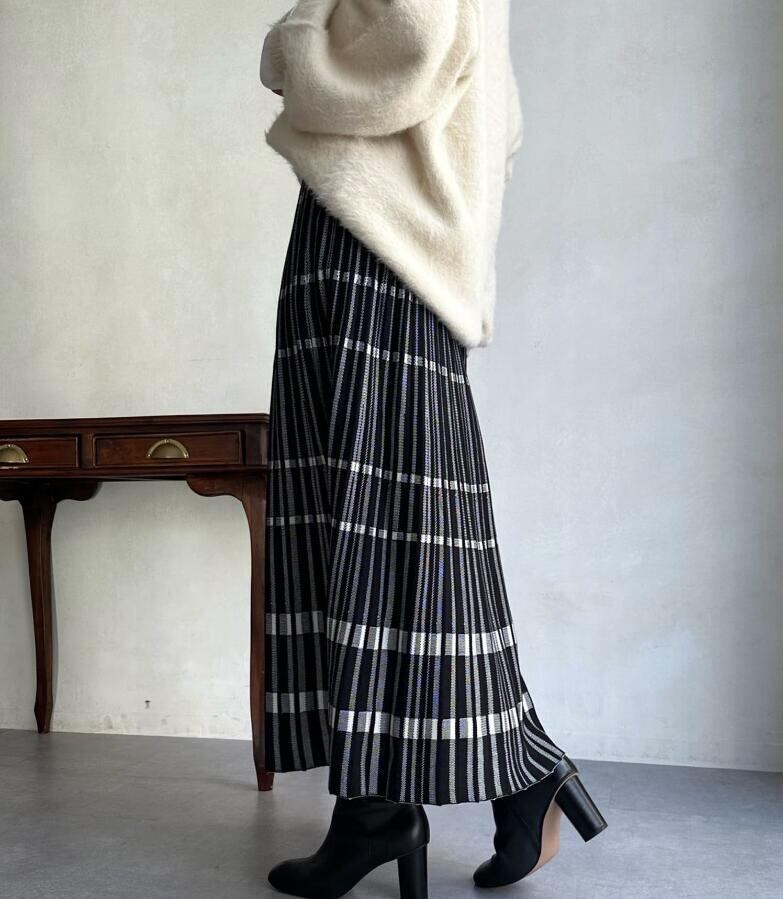 秋にピッタリな素材のスカートは今季注目のアイテム。