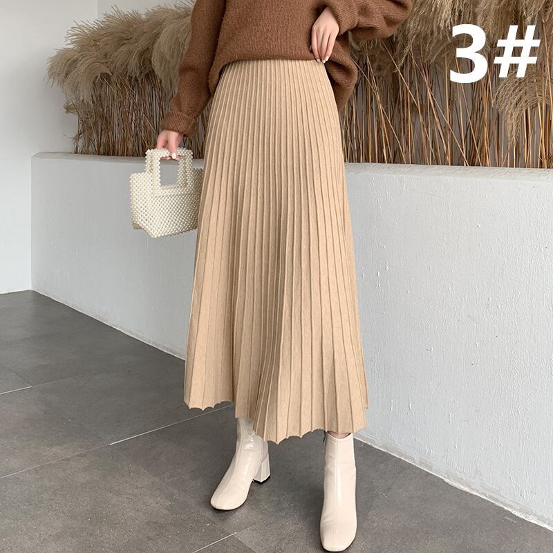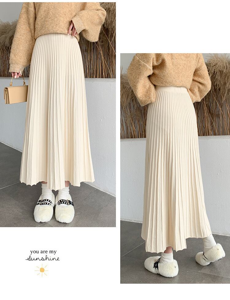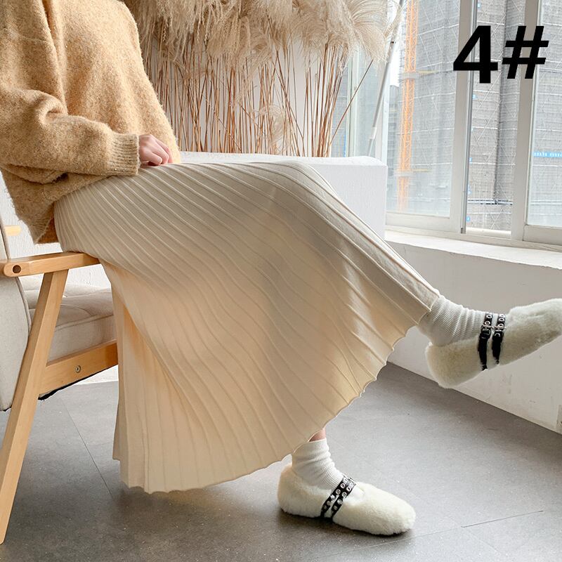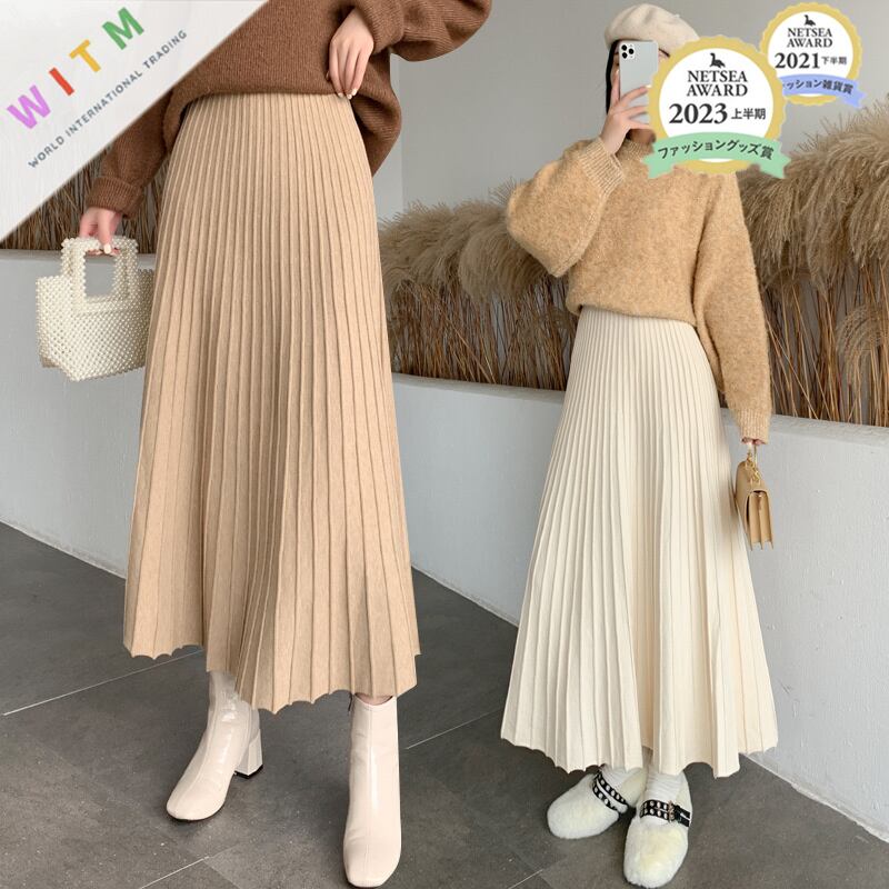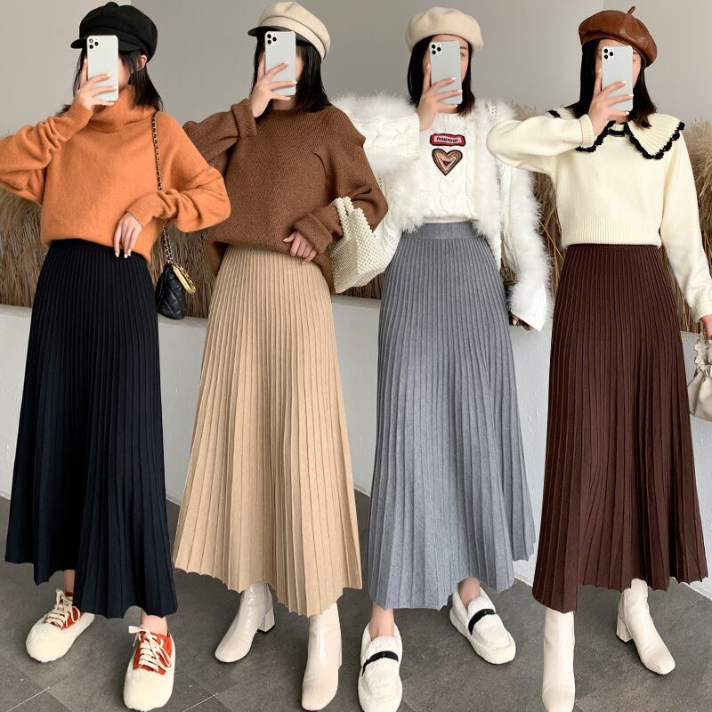◎【送料無料】2023秋新作 ニット ニットスカート ロング丈スカート 着回し ウェストゴム 無地