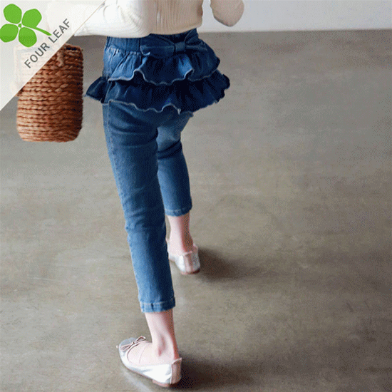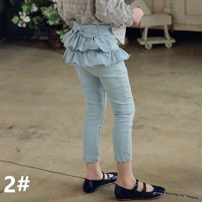 ◎【送料無料】ボトムス 蝶結び ロングパンツ デニムパンツ キッズ 子供服 カジュアル 可愛い 女の子 90-150cm