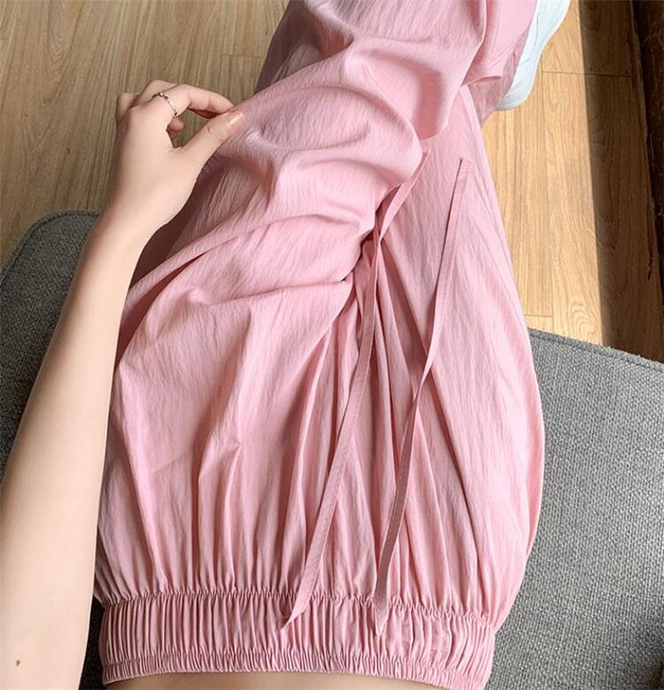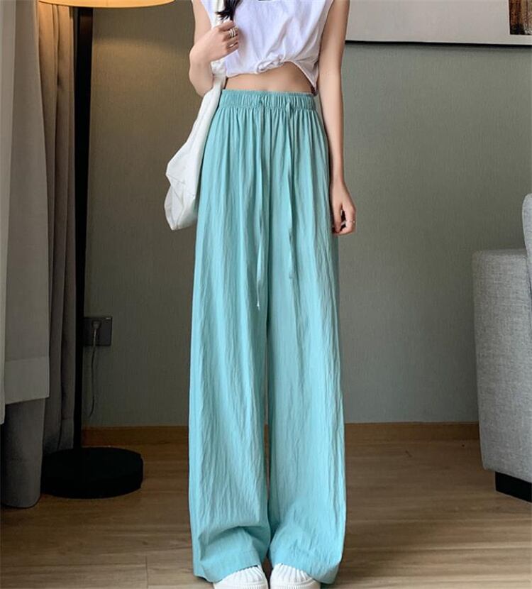 ◎【送料無料】安いし可愛い大人気商品 だるさ ギャザー ストレートパンツ 夏 ハイウエスト カジュアル ワイドパンツ