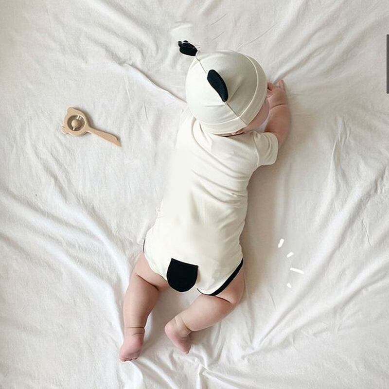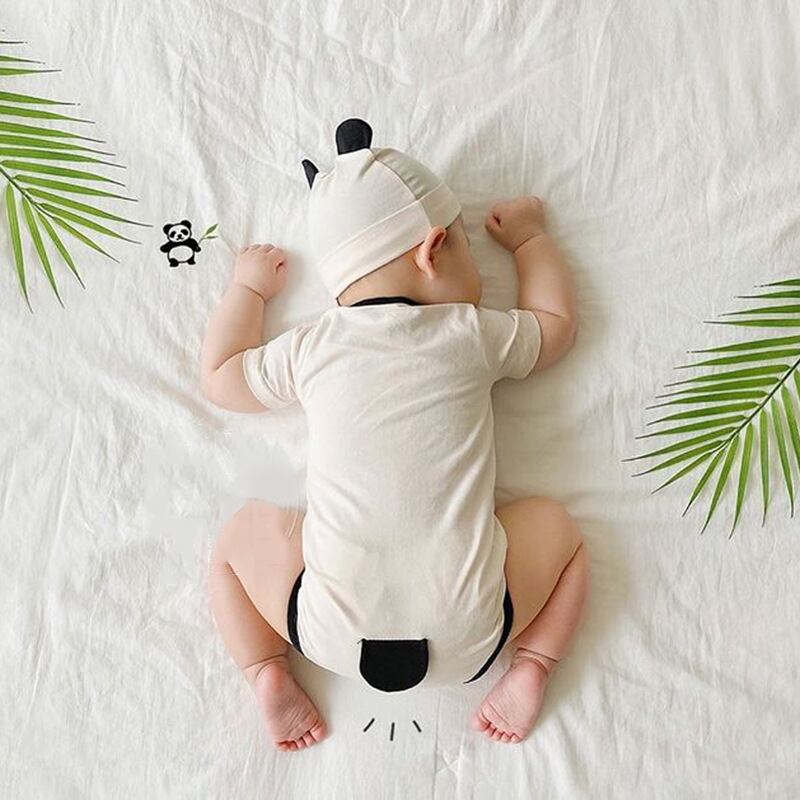 ◎【送料無料】パンダ柄 ロンパース 帽子付き 2点セット ウンドネック 半袖 ベビーロンパース 通気性 赤ちゃん 66cm~90cm