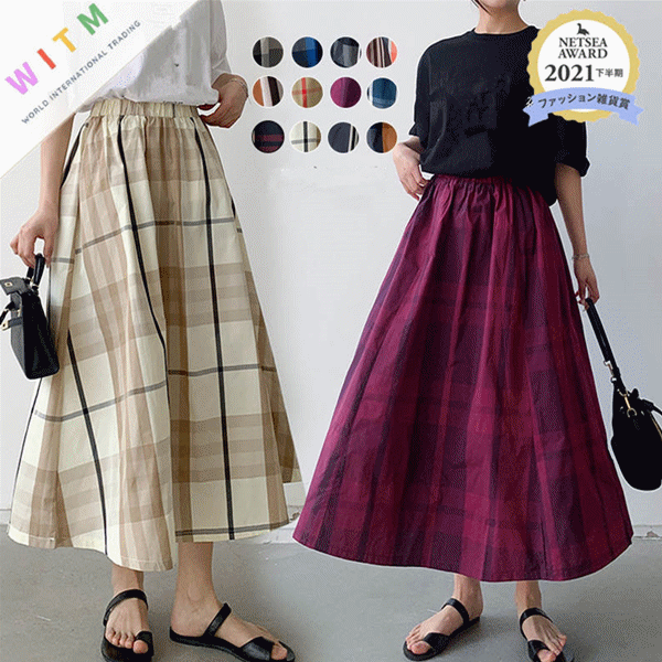 ◎【送料無料】2023春夏新作 ロング丈スカート スカート Aラインス チェック柄 レディース おしゃれ