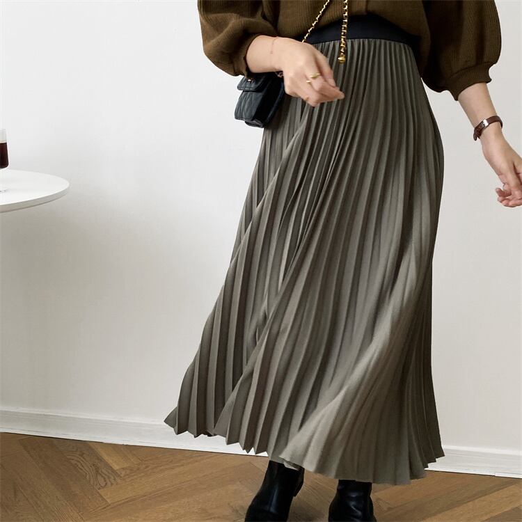◎【送料無料】毎日着たいデザイン ロングスカート スリム プリーツスカート Aライン ハイウエスト 中長セクション