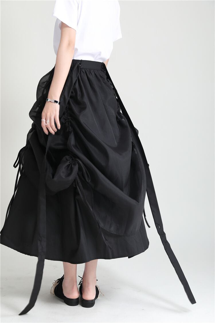 ◎【送料無料】清純で人をうっとりさせる 中長スカート レースアップ ジェントルスタイル スリム ロングスカート