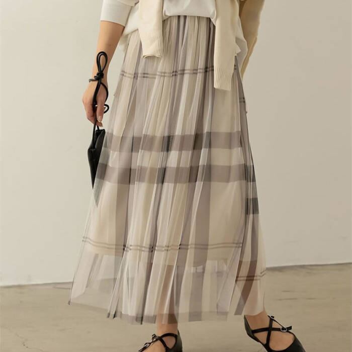 ◎【送料無料】2023春夏新作 チェック柄 ロング丈スカート スカート ウェストゴム フレア レディース おしゃれ