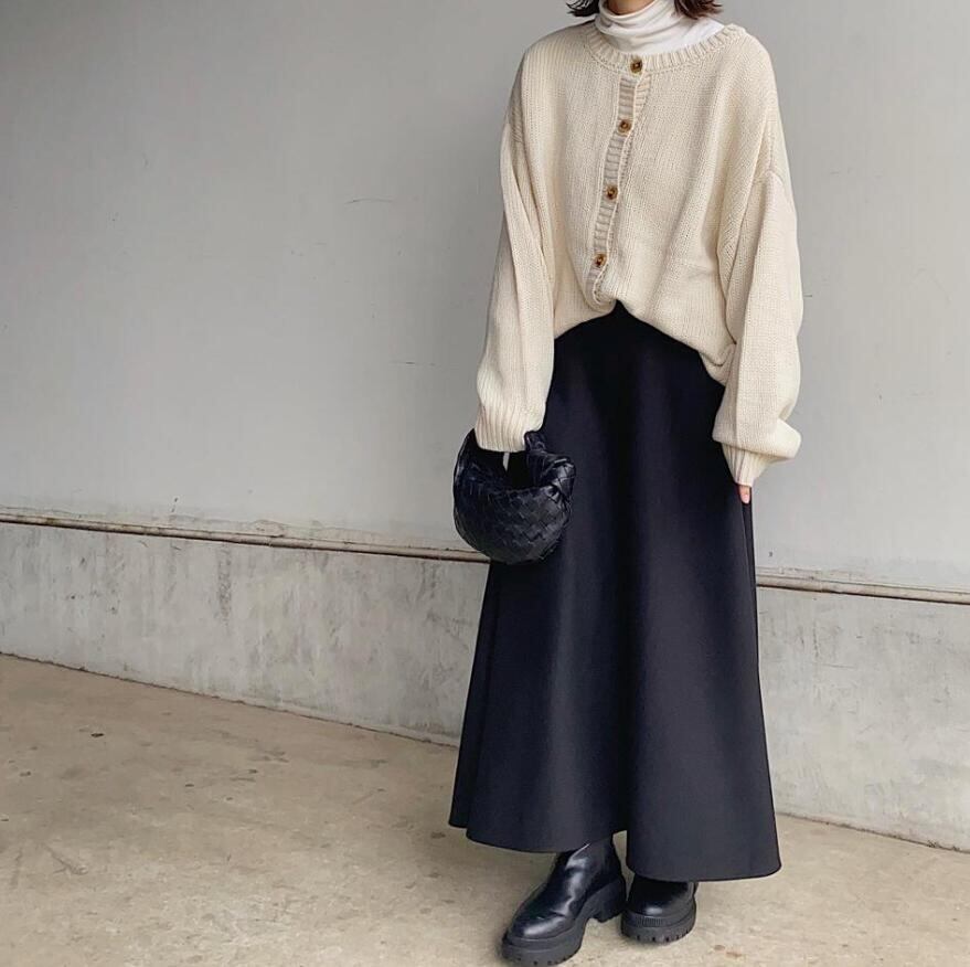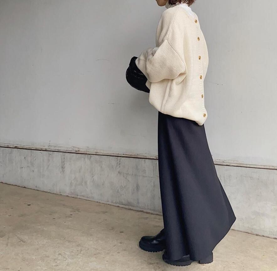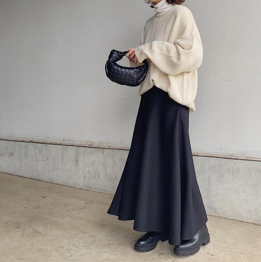 春秋にピッタリな素材のスカートは今季注目のアイテム。