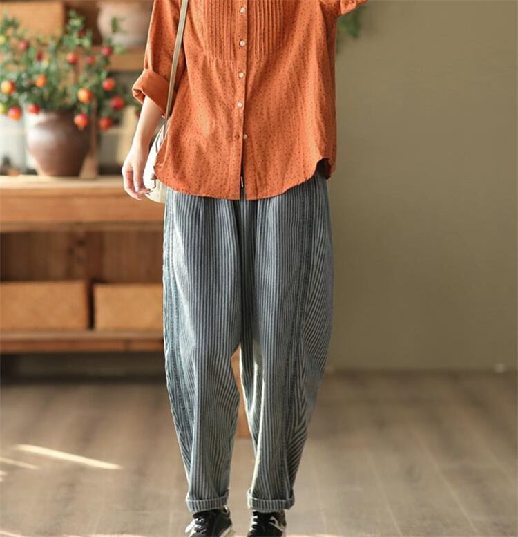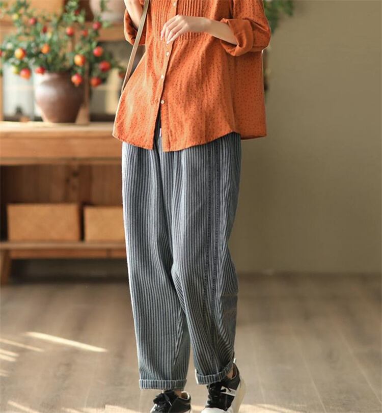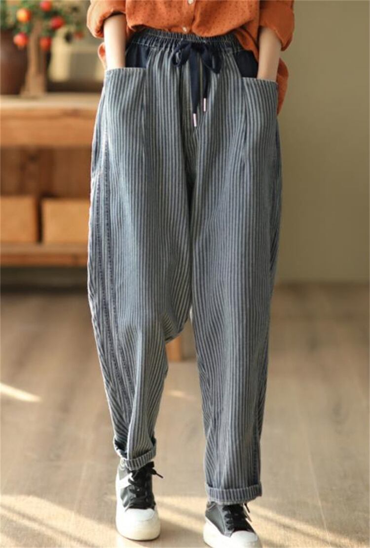 ◎【送料無料】ジーンズ カジュアル レトロ 2023早春 ストライプ ロングパンツ テーパードパンツ スリム