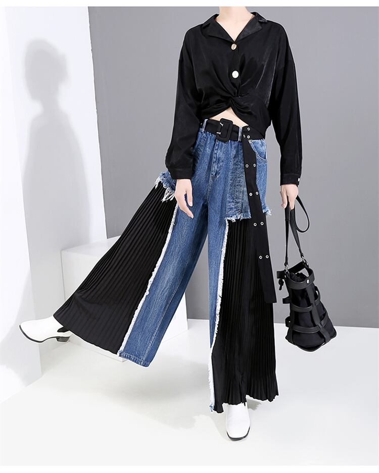 ◎【送料無料】スリム つなぎ シフォン お出かけ ハイウエスト 洗練された ジーンズ 縫付 ワイドパンツ トレンド 大人気