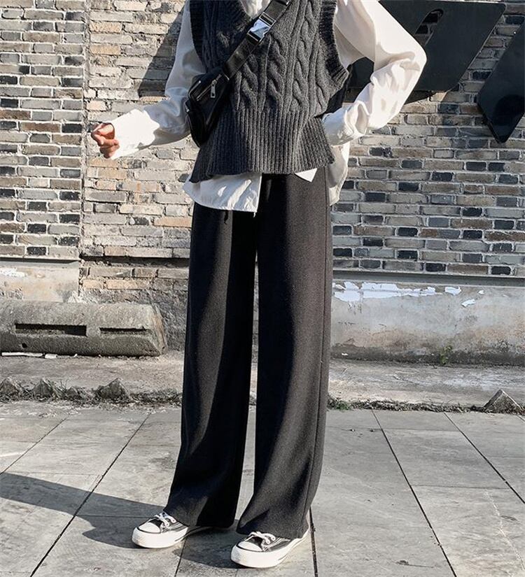 ◎【送料無料】ニット ワイドパンツ ハイウエスト ストレート ゆったりする ロングパンツ 気質