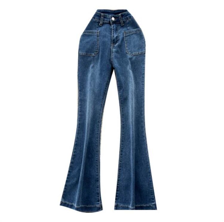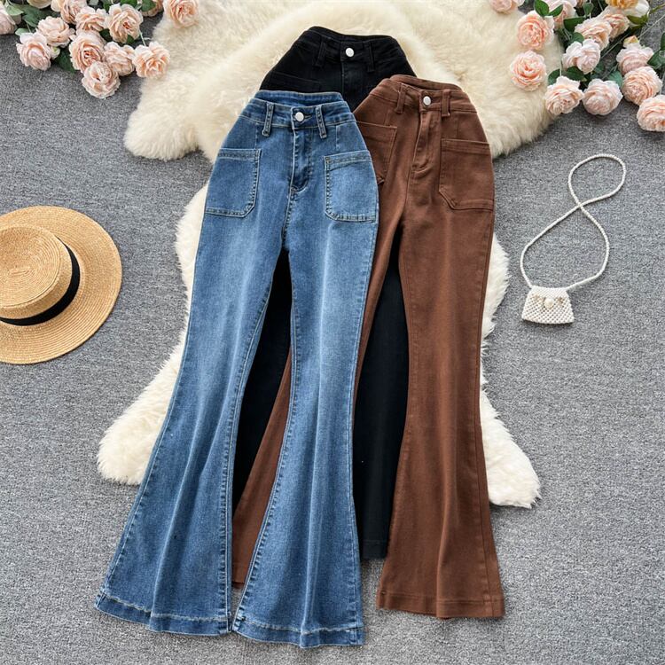 ◎【送料無料】デザインセンス スリム フレアパンツ レトロ ジーンズ 秋 ロングパンツ ハイウエスト