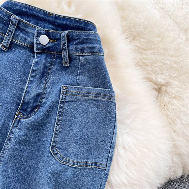 デザインセンス スリム フレアパンツ レトロ ジーンズ 秋 ロングパンツ ハイウエスト
