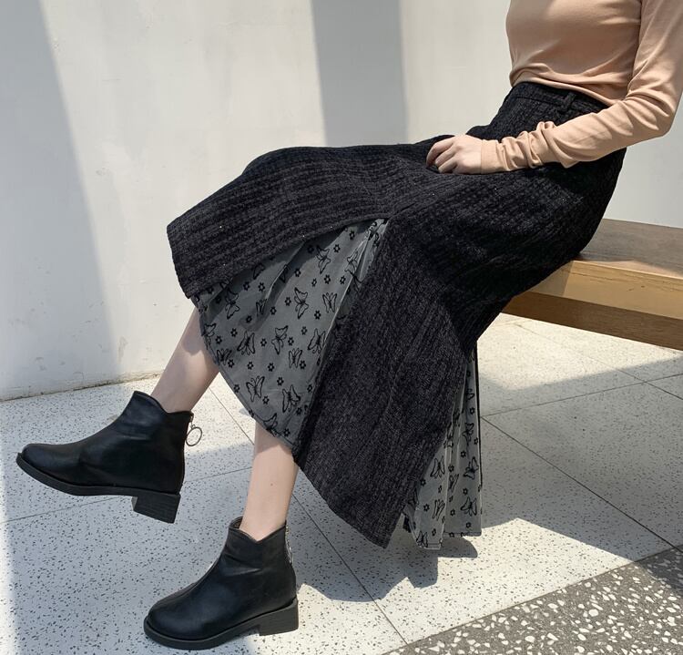 ◎【送料無料】毛はね フィッシュテールスカート 秋冬 ハイウエスト スリム タイトスカート Aライン ロングスカート