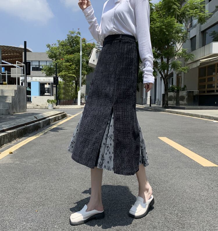 毛はね フィッシュテールスカート 秋冬 ハイウエスト スリム タイトスカート Aライン ロングスカート