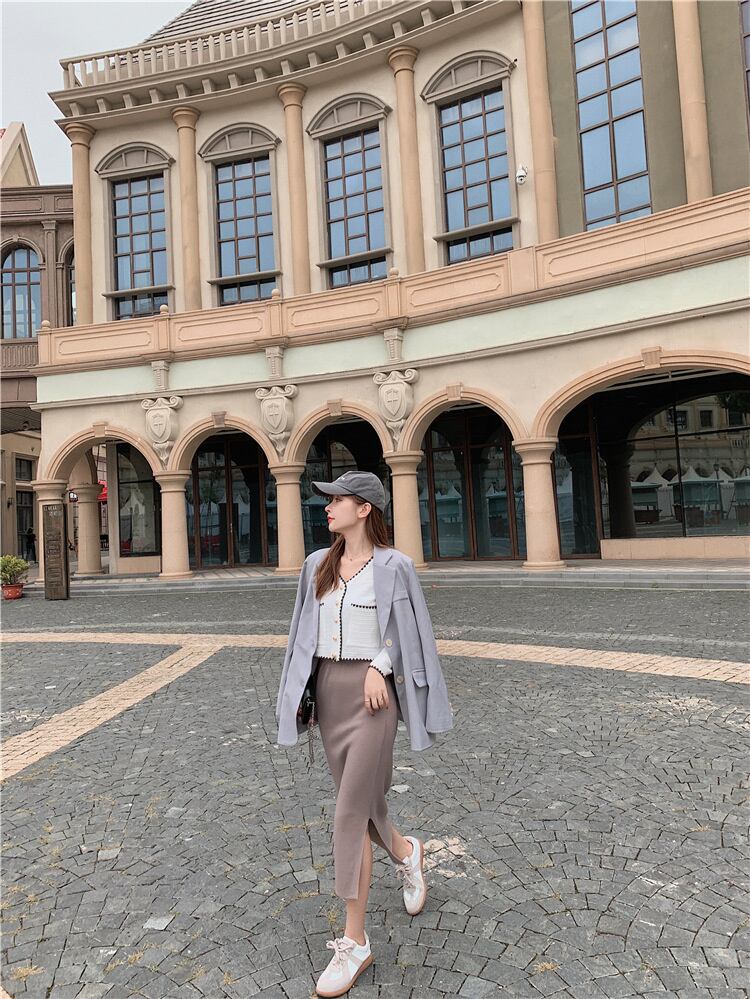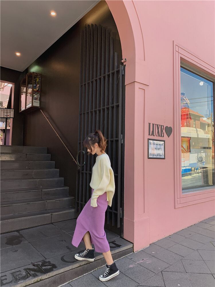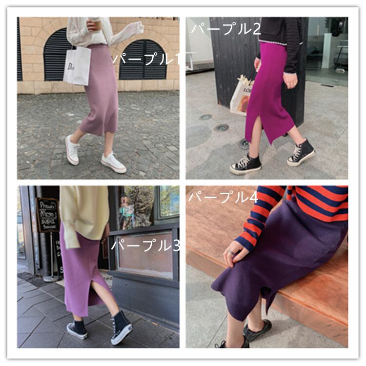 ニットハーフスカート ジェントルスタイル ハイウエスト 中長セクション タイトスカート スプリット