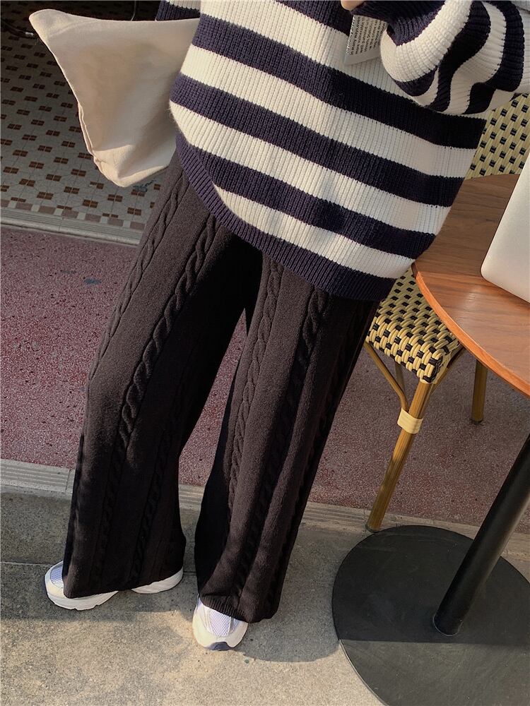 ◎【送料無料】原宿BF風 スリム 秋冬 ロングパンツ ストレートパンツ レトロ 麻花 ニットパンツ