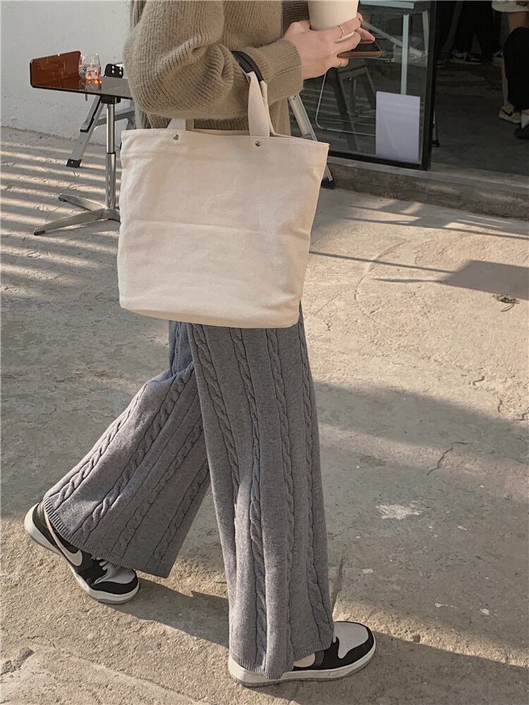 原宿BF風 スリム 秋冬 ロングパンツ ストレートパンツ レトロ 麻花 ニットパンツ