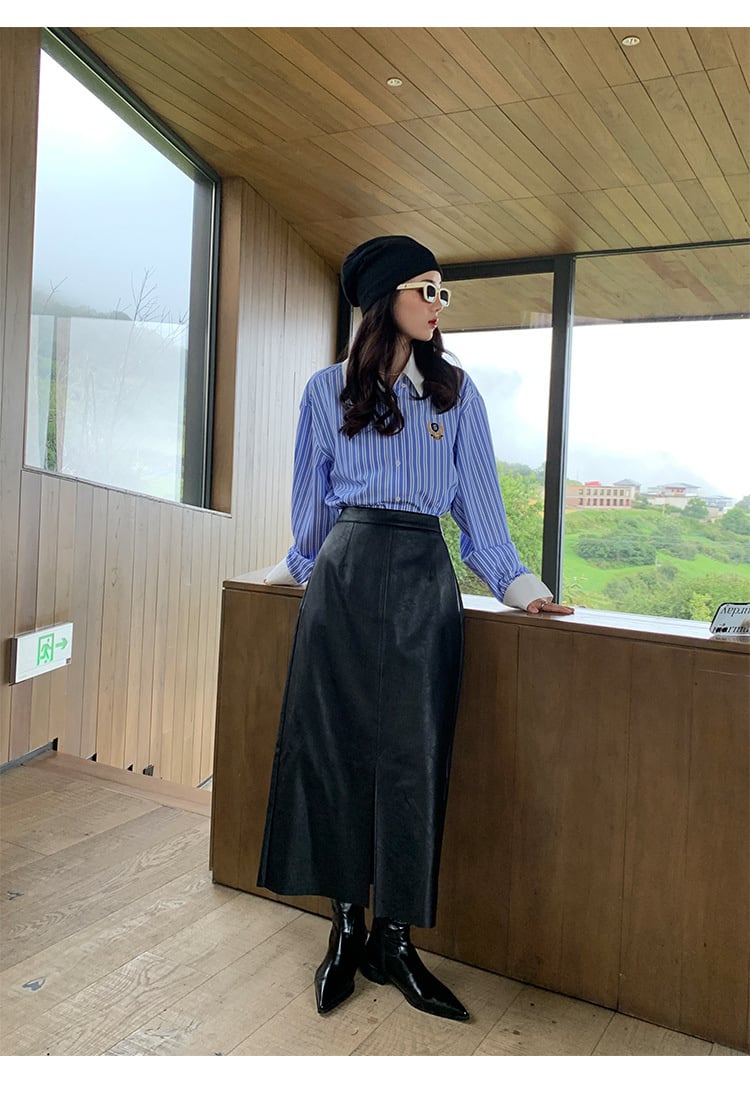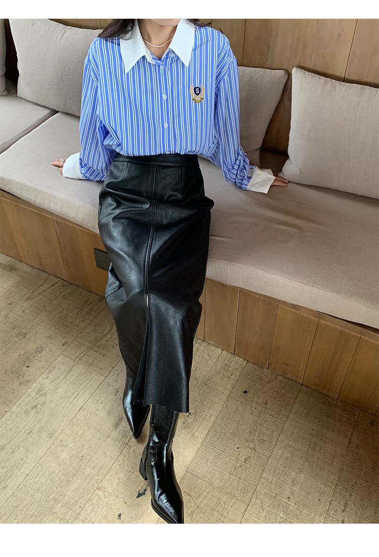 PUレザースカート 初秋 快適である スリム ロングスカート ハイウエスト スプリット 大人気