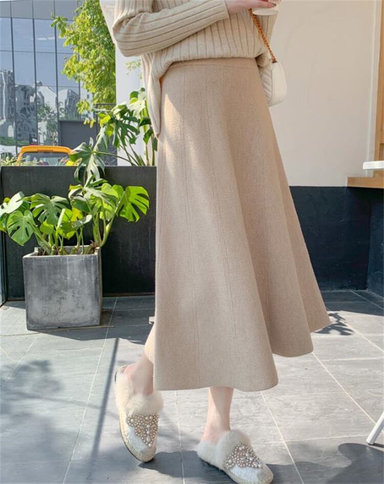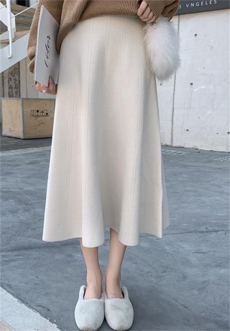 ハイウエスト 春と秋 ニットスカート 秋と冬 新品 厚い 快適である 傘スカート ロングスカート