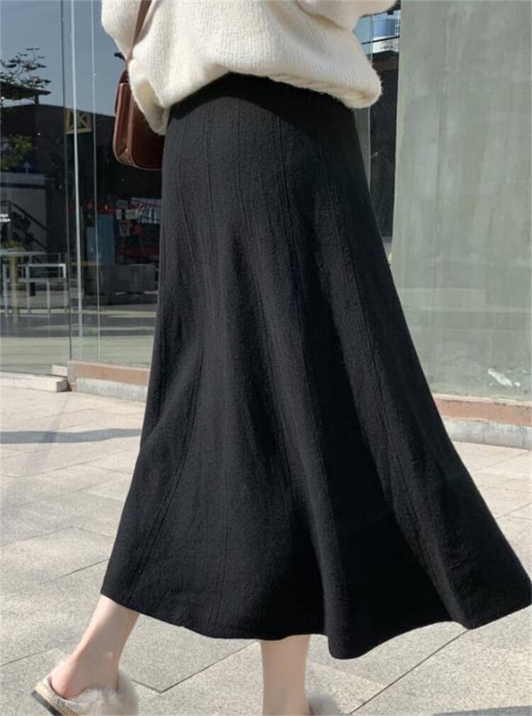 ◎【送料無料】ハイウエスト 春と秋 ニットスカート 秋と冬 新品 厚い 快適である 傘スカート ロングスカート
