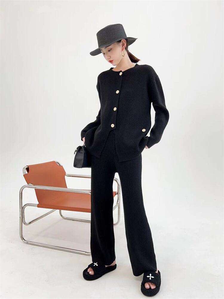 ◎【送料無料】ロングパンツ 柔らかい スリム ワイドパンツ セット デザインセンス ニットトップス カーディガン