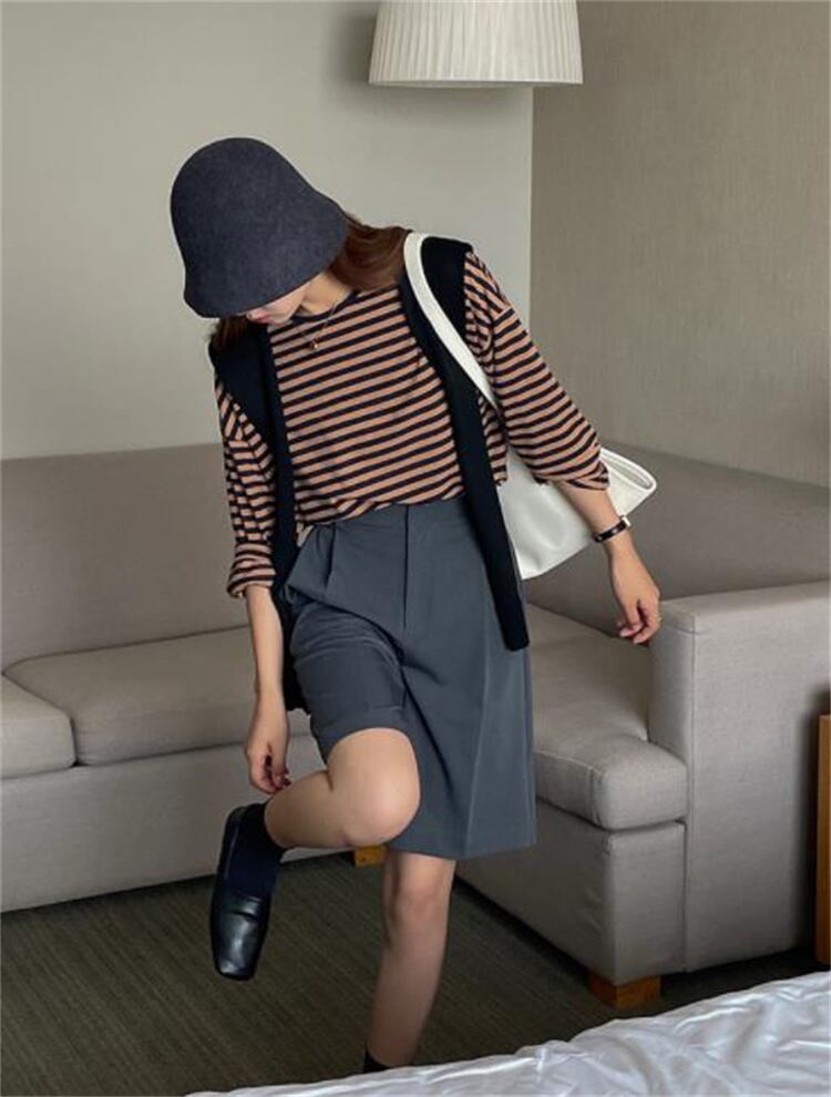 気質 スリム カジュアル ピュアカラー ハイウエスト ストレート ショートパンツ