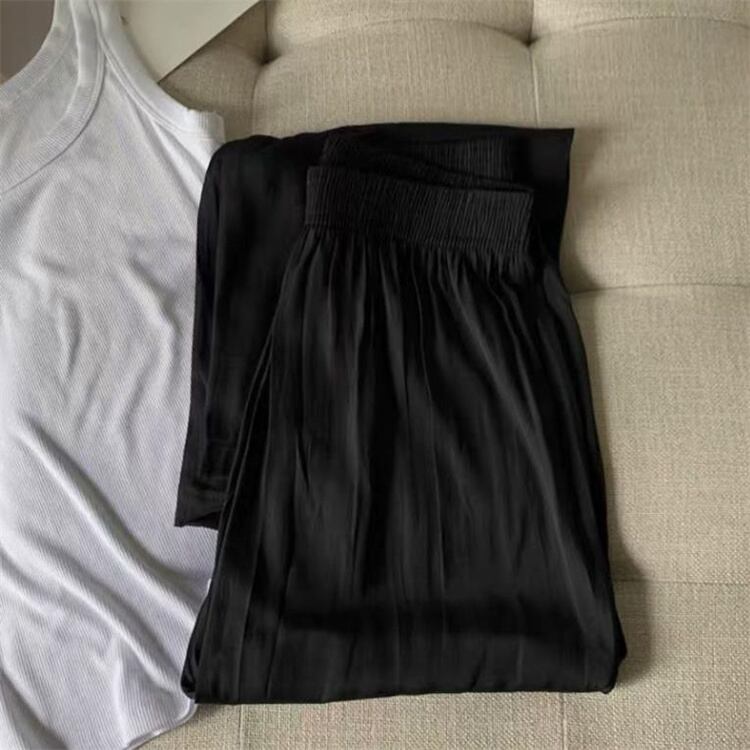 ◎【送料無料】ソフト ライト ワイドパンツ スリム サマー ハイウエスト ゆったりする ストレート ロングパンツ