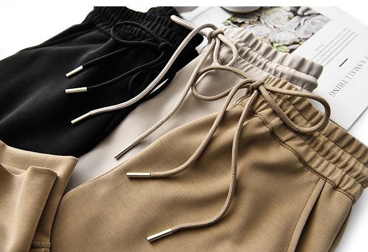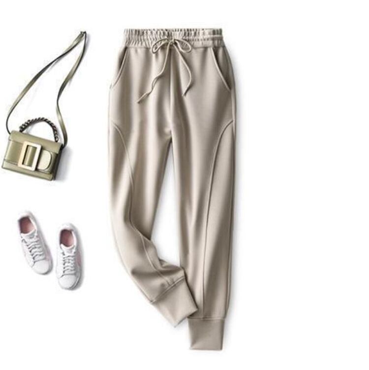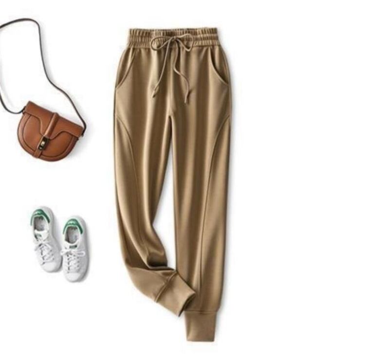 大きいサイズ ハイウエスト ピュアカラー ロングパンツ テーパードパンツ カジュアル セーターパンツ