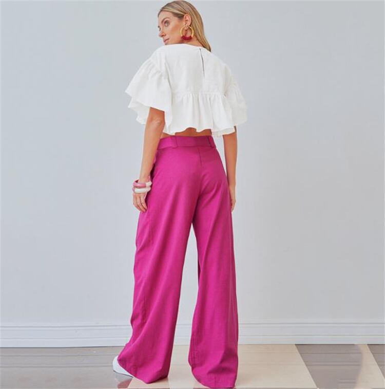 ワイドパンツ 綿麻 ゆったりする エレガント 肌にやさしい ピュアカラー カジュアル ハイウエスト