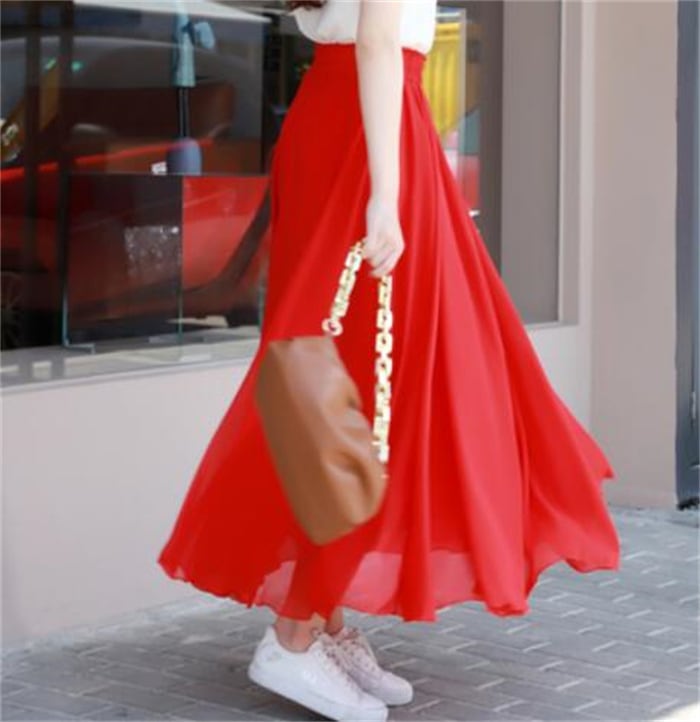 店長推薦シフォン/スカート/ブラック/スカート/女性/夏/ハイウエスト/スカート/ロングスカート