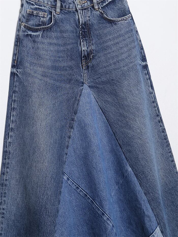 韓国ファッション 欧米風2022 新品 ハイウエスト カジュアルAラインスカートデニムスカート