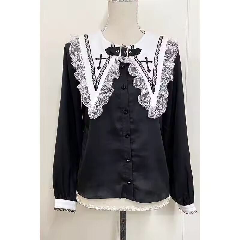 【送料無料◎】 ビクトリア朝のゴシックブラウス和菓子レースフリル刺繍セーラー襟シャツ女性パンクスタイル Y2k 長袖トップス