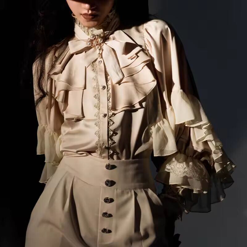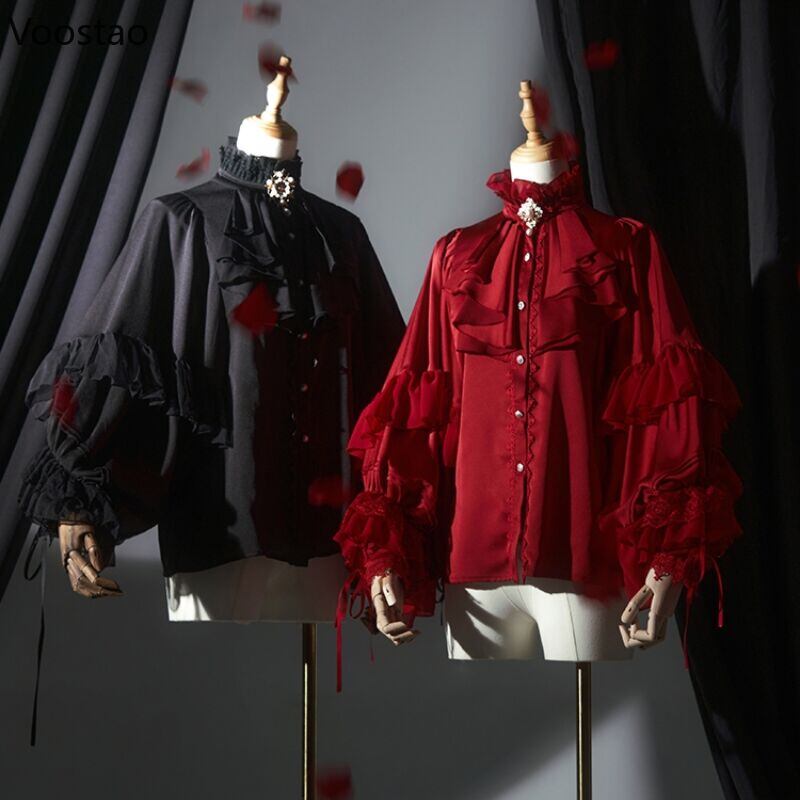 【送料無料◎】 ビクトリア朝のゴシックヴィンテージシャツ女性エレガントなレースのパッチワークバットウィングスリーブブラウストップス女性 Y2k 美的 JK Blusas