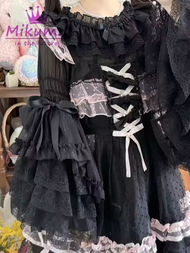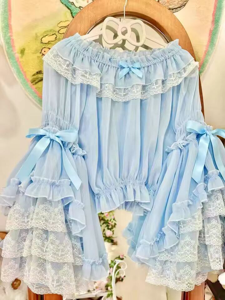 【送料無料◎】 Mikautumn-女性のビクトリア朝のフレアスリーブのシャツ,原宿y2kブラウス,柔らかいレースの弓,フリル,日本のカワイイトップス