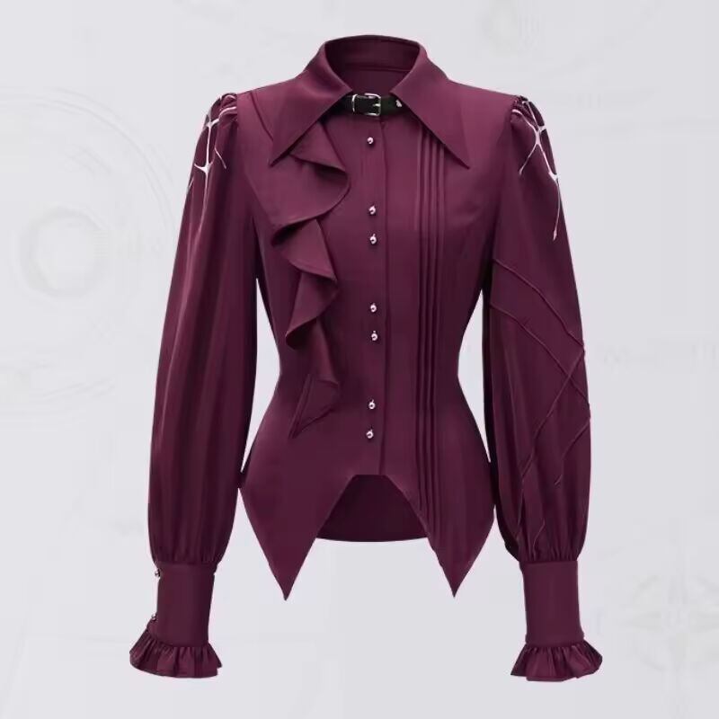 【送料無料◎】 ビクトリア朝のヴィンテージエレガントなシャツ女性甘いフリル長袖不規則なブラウス女性日本ゴシック Y2k スリムトップス