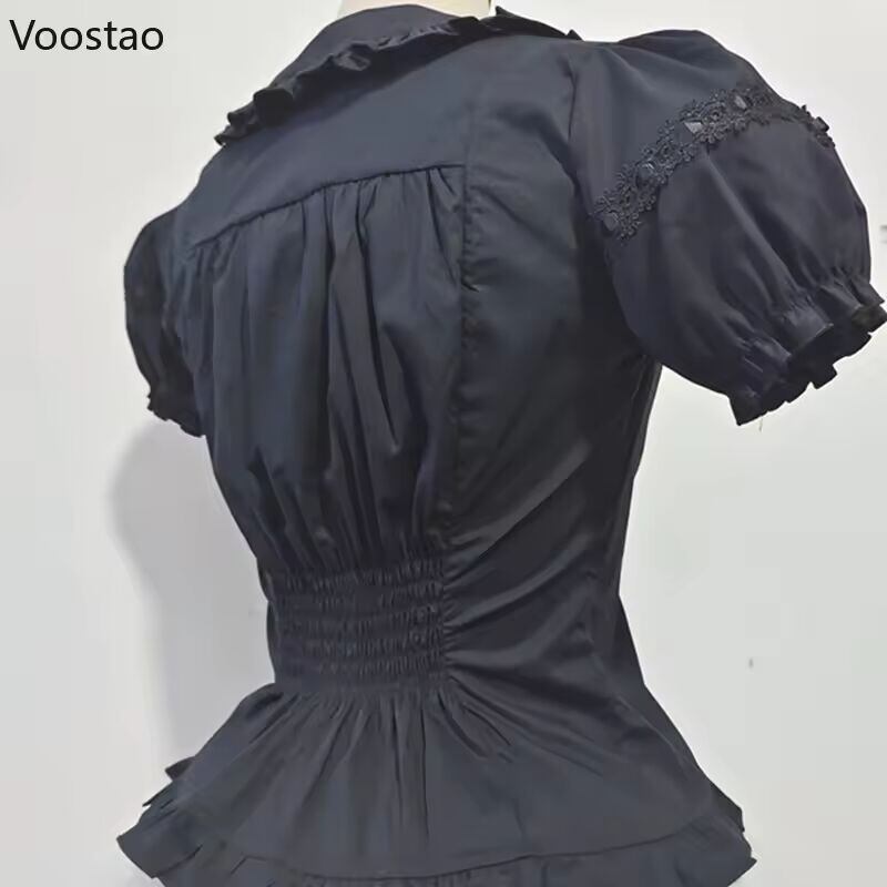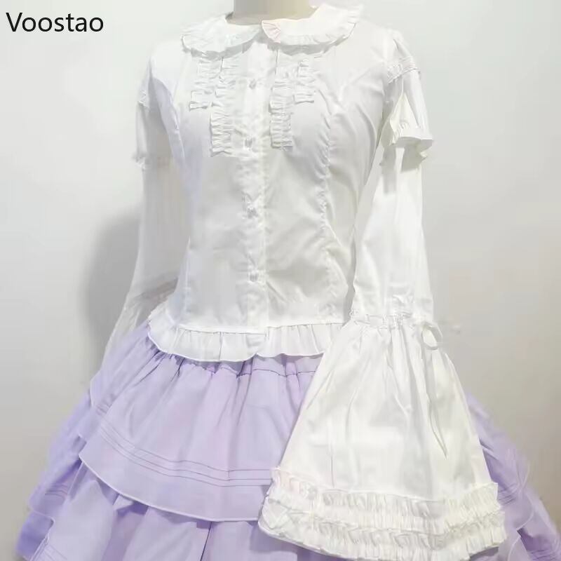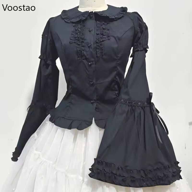 【送料無料◎】 ビクトリア朝のゴシックシャツ女性甘いエレガントな取り外し可能な長袖ブラウス日本 Vinatge ピーターパン襟スリムトップス