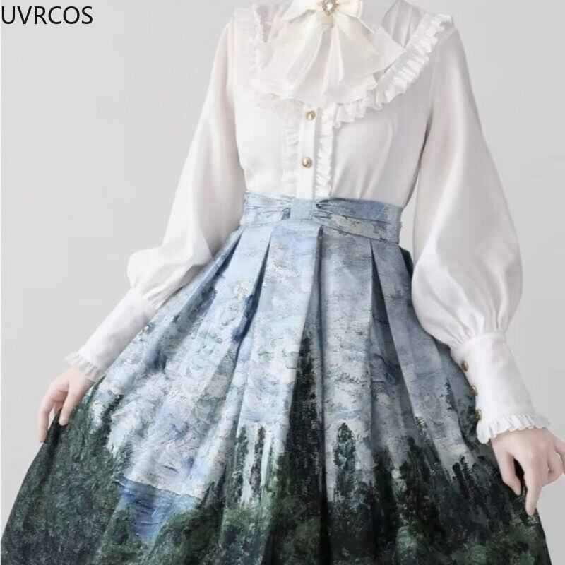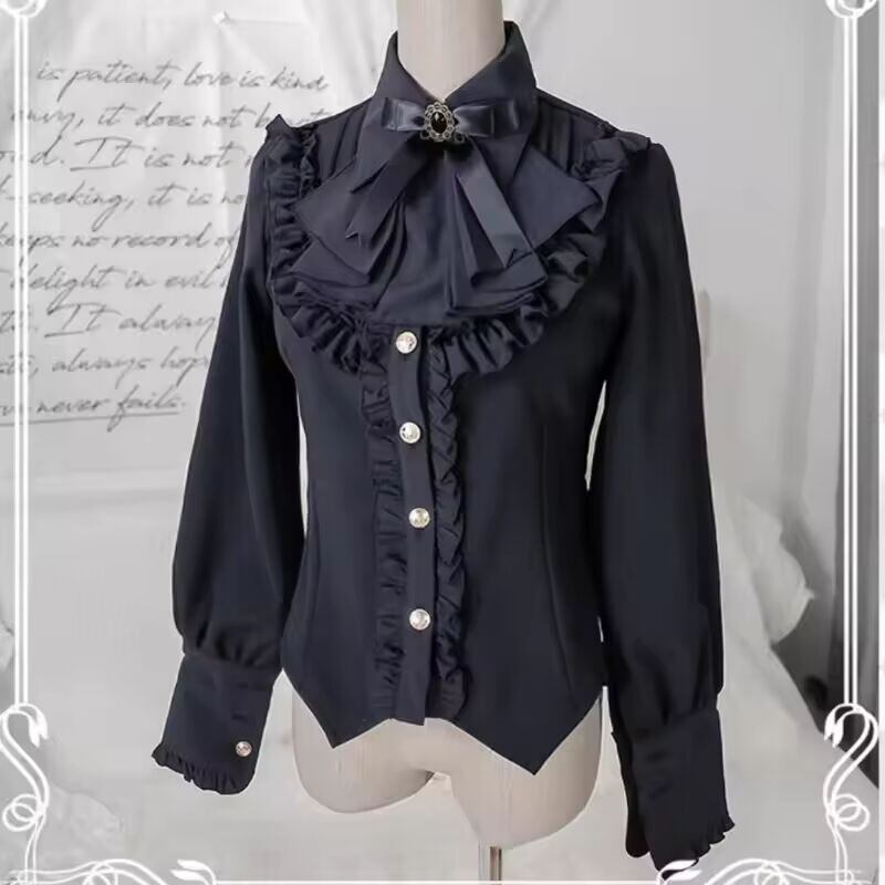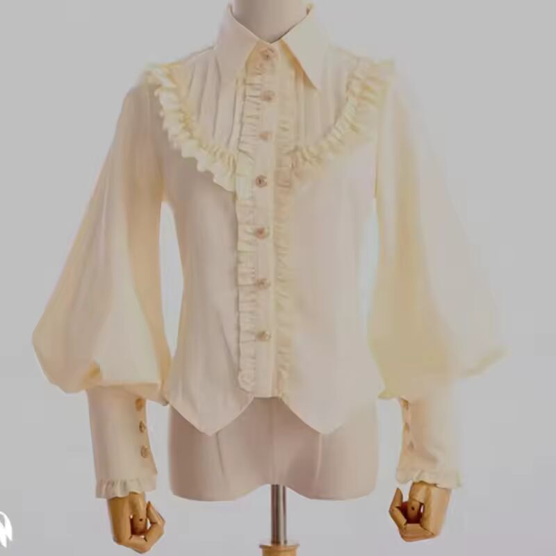 【送料無料◎】 日本のヴィンテージエレガントなジゴットスリーブシャツ秋 Y2k 美的不規則なブラウストップス女性ビクトリア朝のゴシックスリム Blusas