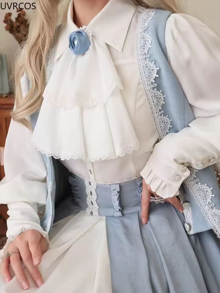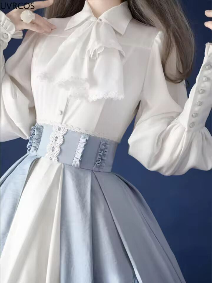 【送料無料◎】 ビクトリア朝のゴシックブラウス女性和風 Y2k シックなジゴスリーブトップスヴィンテージエレガントな甘い弓白プリンセスシャツ
