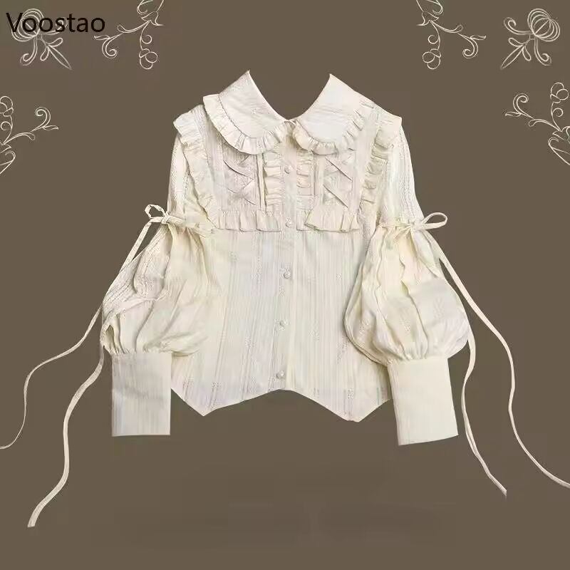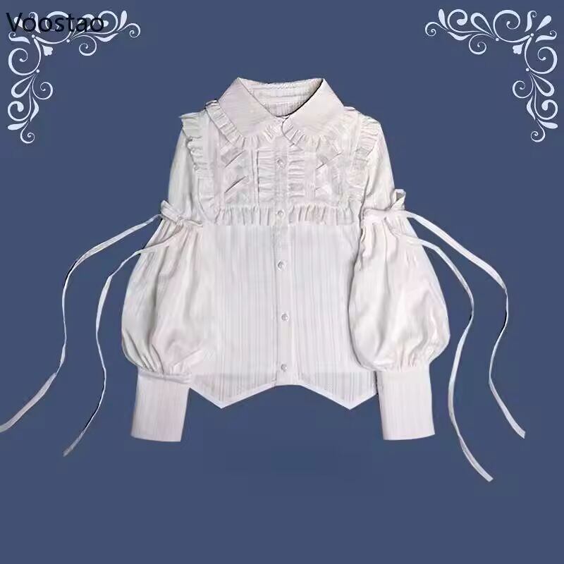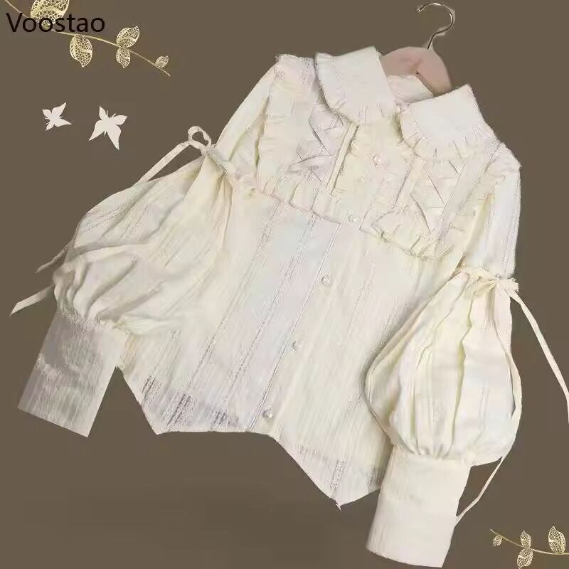 【送料無料◎】 ヴィンテージゴシックシャツ女性エレガントなスタイルジゴスリーブブラウス女の子ビクトリア朝の甘いフリルかわいいトップス Blusas Mujer