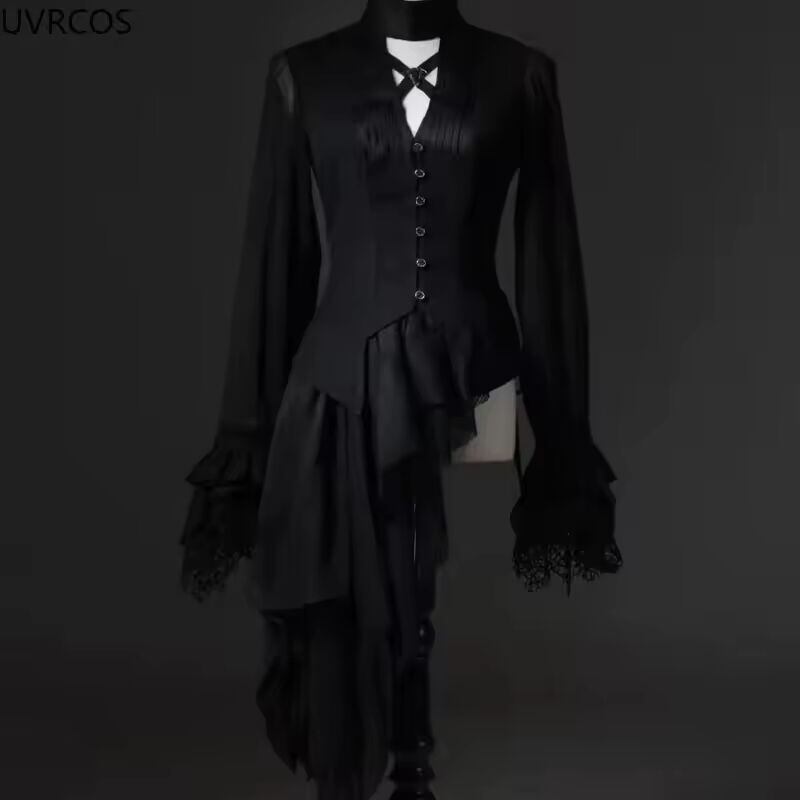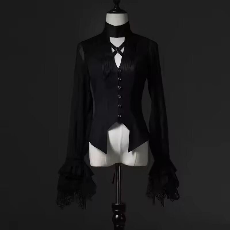 【送料無料◎】 Japane ビクトリア朝のブラウス女性原宿 Y2k V ネック不規則なレース長袖シャツパンクスタイルスリム包帯トップス Blusas