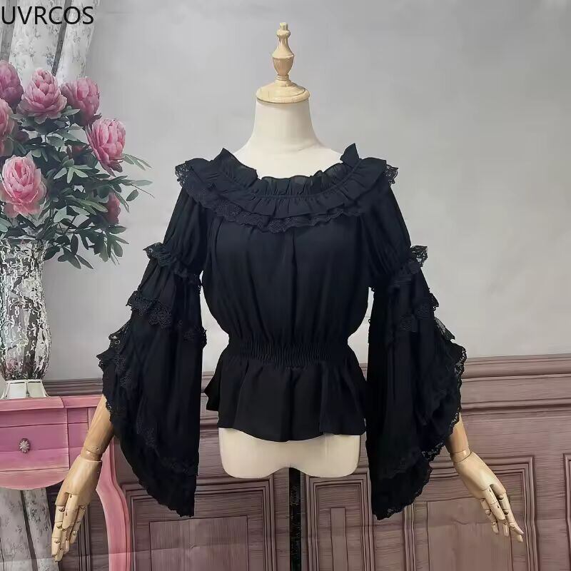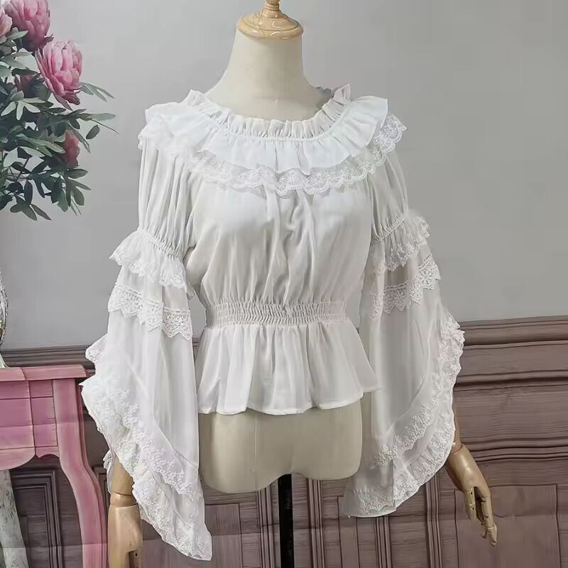 【送料無料◎】 ヴィンテージシルクシフォンブラウス,フレアスリーブ,ラウンドネック,プリンセス,フリル付き